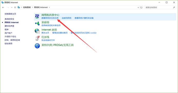 3.在打开的窗口中点击“查看网络状态和任务”快捷链接